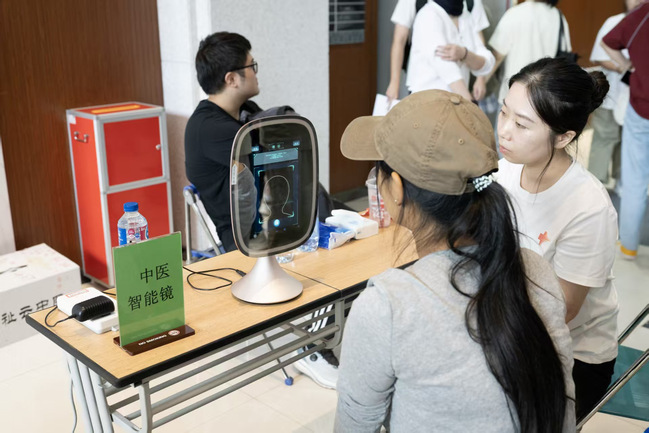 讲座结束后,同学们纷纷体验了中医智能镜检测、Inbody体成分检测、中医体质辨识小程序测试及血糖、血压检测的四项特色健康检测服务。