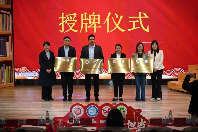 彭丽与郑小燕为四所大中小学颁授大中小学思政课一体化建设基地牌匾,刘方为我校马克思主义学院教师海燕颁发思政政工师聘书。这标志着高校与基础教育之间建立起常态化合作机制,进一步推进多方资源共享、课程共建、师资共育。