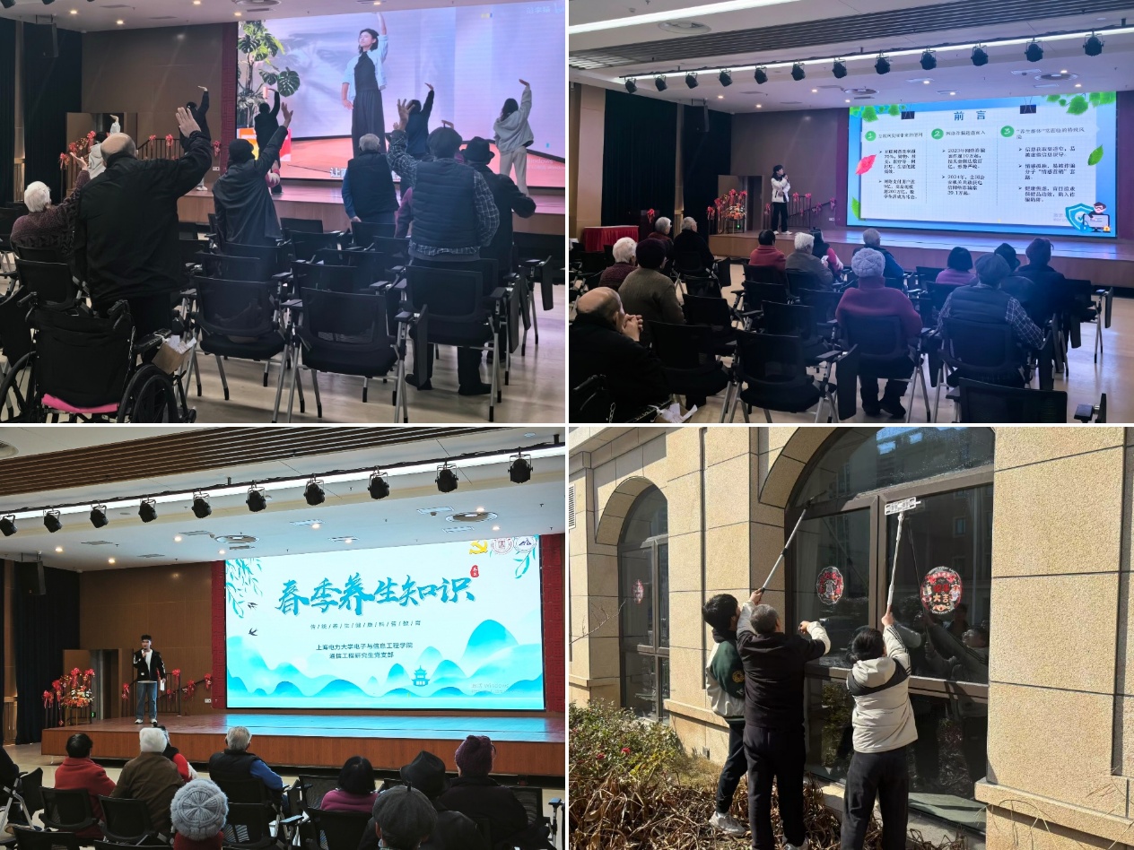 为弘扬敬老爱老传统美德,践行志愿服务精神,近日,电子与信息工程学院师生前往临港养护院开展“养生健康宣讲暨志愿服务”主题活动,通过知识科普、互动锻炼与劳动服务为养护院的老人们送去春日温暖。电子与信息工程学院通信工程研究生党支部与2024261本科生团支部学生参加活动,活动由电信学院辅导员、通信工程研究生党支部书记刘姝主持。