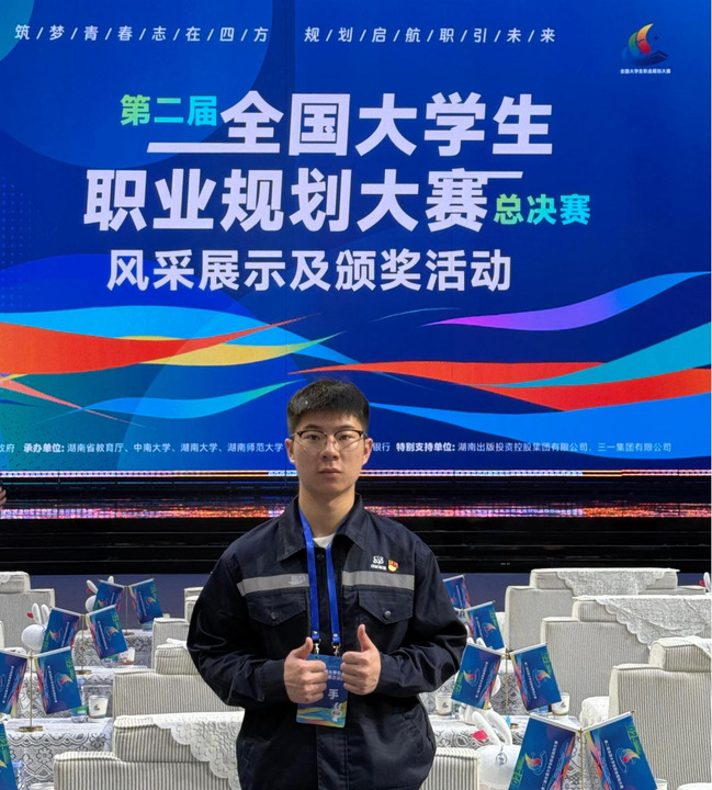 4月16日-19日,“筑梦青春志在四方,规划启航职引未来”第二届全国大学生职业规划大赛全国总决赛在湖南长沙举行。我校自动化工程学院学生李威鸿冲出重围,斩获全国总决赛成长赛道高教组金奖(全国共42人),这是我校继首届全国大学生职业规划大赛获得全国总决赛金奖后,再次夺得此项赛事的最高奖项,展现出上电学子深厚扎实的专业底蕴和积极主动的职业规划意识。比赛期间,校党委副书记、副校长朱克勇亲临现场指导并慰问。