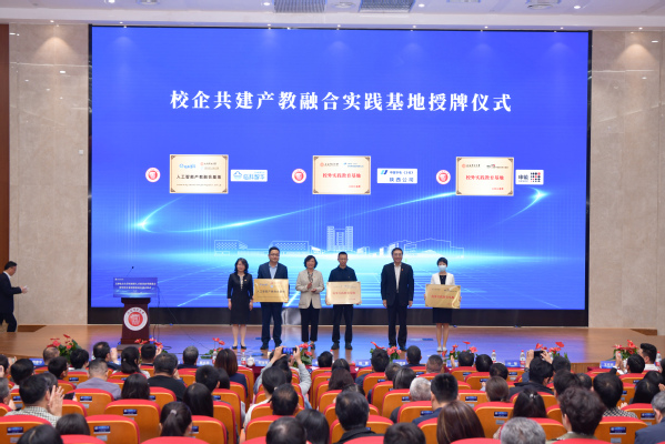 在校企合作、产教融合人才培养授牌签约环节,校党委副书记、纪委书记张艳林、校党委副书记仰颐、副校长符杨,共同为华电陕西能源有限公司、申能股份新兴能源、上海临科智华数字科技有限公司等3家企业进行校企共建实践基地授牌。