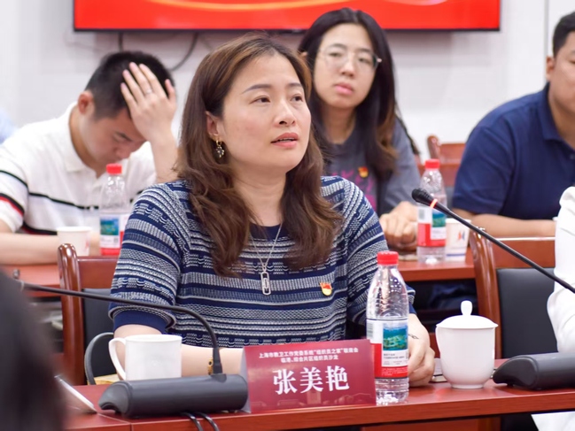 上海工艺美术职业学院王欣以《区域共建聚合力,非遗传承润初心,心灵疗愈筑同心》为主题,介绍了手工艺术学院通过创新党员教育管理模式,凝聚区域共建合力,探索“党建+非遗+心理”新模式激发党建活力,提升党员凝聚力的有效做法。