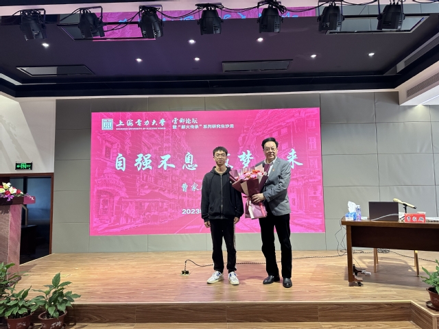 最后,研究生代表杨武向一直以来致力于上电教育事业发展的曹教授献花,表达对老教授由衷的感激和崇高的敬意。