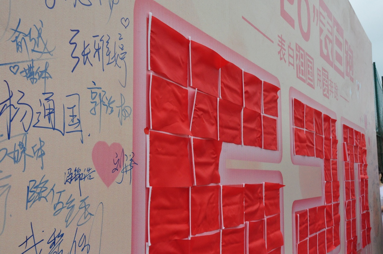 开跑仪式上,校团委副书记陈铭洲、校团委挂职副书记曲家瑶分别在浦东校区、杨浦校区为此次活动剪彩。活动中,我校青年将爱心贴在胸前,以两人三足的形式,手持小红旗,依照精心设计的路线跑出“SUEP”形状字样,并使用跑步软件记录跑步步数及路线,在摆动双臂、奋勇直追、挥洒汗水的同时将自己对祖国赤诚的热爱之心彰显得淋漓尽致。结束后,我校青年深情地将小红旗贴在了表白墙上,留下了亲笔签名,并通过朋友圈表达了对中国共产党的拥护,对日益强大的祖国的热爱,发出了专属于“90后”“00后”的深情表白。