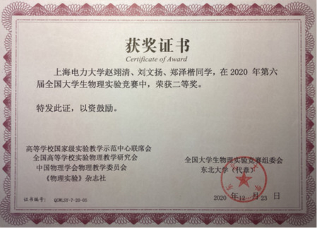 “这是我在大学参加的第一个比赛,和完成习题不一样,设备的输出结果往往与预料的不尽相同。”比赛的前一个月,还在调整设备连接,漆包线缠了又拆,示波器不断的调试......“我们三个在实验室第一次看见示波器出现准确结果的时候,激动地相拥,喊着下班!”经过不断地调试与计算,小组取得了全国大学生物理实验竞赛二等奖。刘文扬在说起时依然很激动。