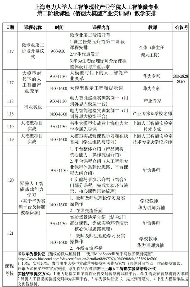 1月17日到1月21日,我校人工智能现代产业学院人工智能微专业开展第二阶段课程信创大模型产教融合实训课程。此次课程依托与华为公司共建的“面向智慧能源的人工智能全栈实践教学平台”,邀请华为技术有限公司、上海人工智能实验室的技术专家与工程师授课。课程延续第一阶段的理论与实践结合、小班化实验实训、课程与认证结合的产教融合教学模式,并在第一阶段课程基础上进行了教学模式创新,课程由一周集中学习拓展到大模型实战营竞赛长周期学习。人工智能现代产业学院41名人工智能微专业学生、近30名教师与30余名研究生,共100余人在线上共同参加此次学习。学生通过此阶段集中产教融合课程教学,不仅学习并实践人工智能领域前沿的大模型技术,学会使用国产化全栈全场景人工智能平台,还初步尝试了AI在输电线路巡检等能源电力场景的应用。